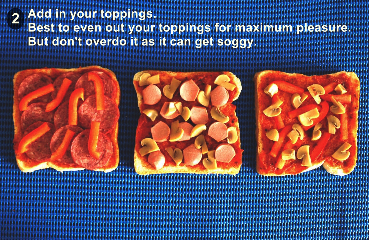 As we are using normal bread as your base, it tends to harden easily so make sure you do not overcook it. If your toppings are done cooking and the cheese have melted then you can take it out from the oven.